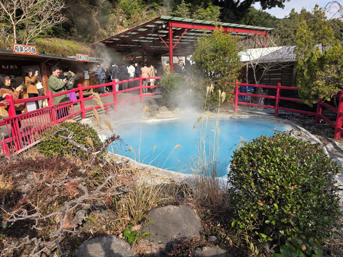 비현실적인 저 하늘색 온천이 너무 신기했어요.
